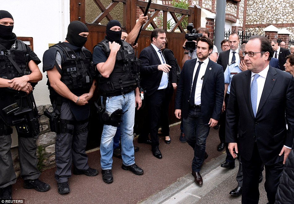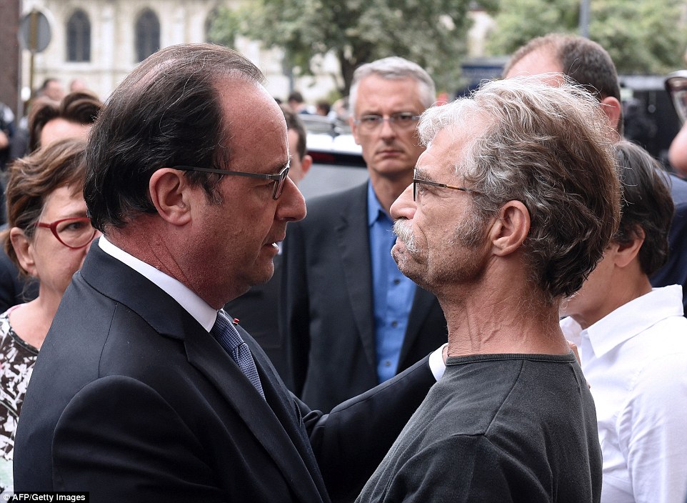 ‘What these terrorists want to do is to divide us, and today after the death of this priest I am thinking of all the Catholics of France and expressing my support,’ he said.