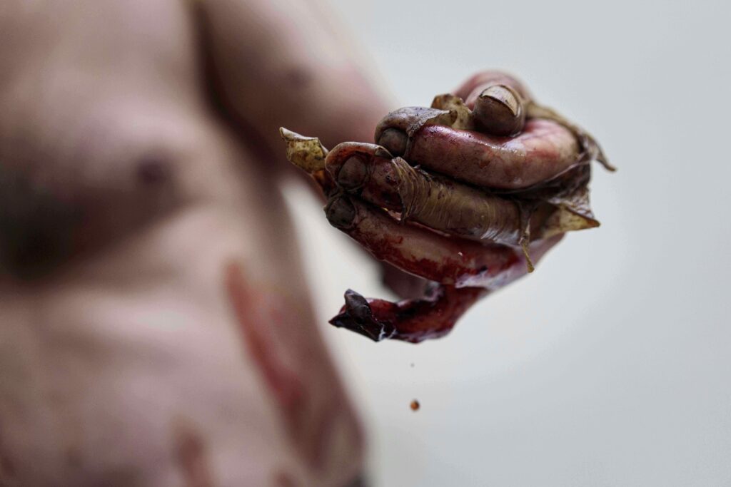 EDS BEMÆRK: GRAFISK INDHOLD – Brandsår på en ukrainsk soldats hånd, der blev såret under kampe med russiske styrker på frontlinjen, ved Da Vinci Wolves-bataljonens stabiliseringspunkt i Pokrovsk-retningen, Ukraine, mandag den 11. august. 11, 2025 (AP Photo/Evgeniy Maloletka)